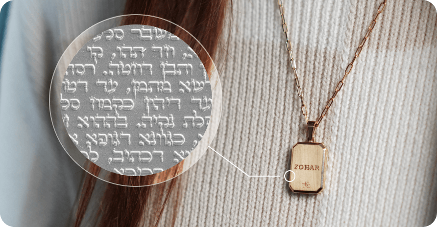 Contained within each locket is a silicon chip that has been microscopically inscribed with the entire 23-volumes of the Zohar, in the original Aramaic text, so each piece is imbued with the ability to bring protection, healing, peace, and fulfillment.