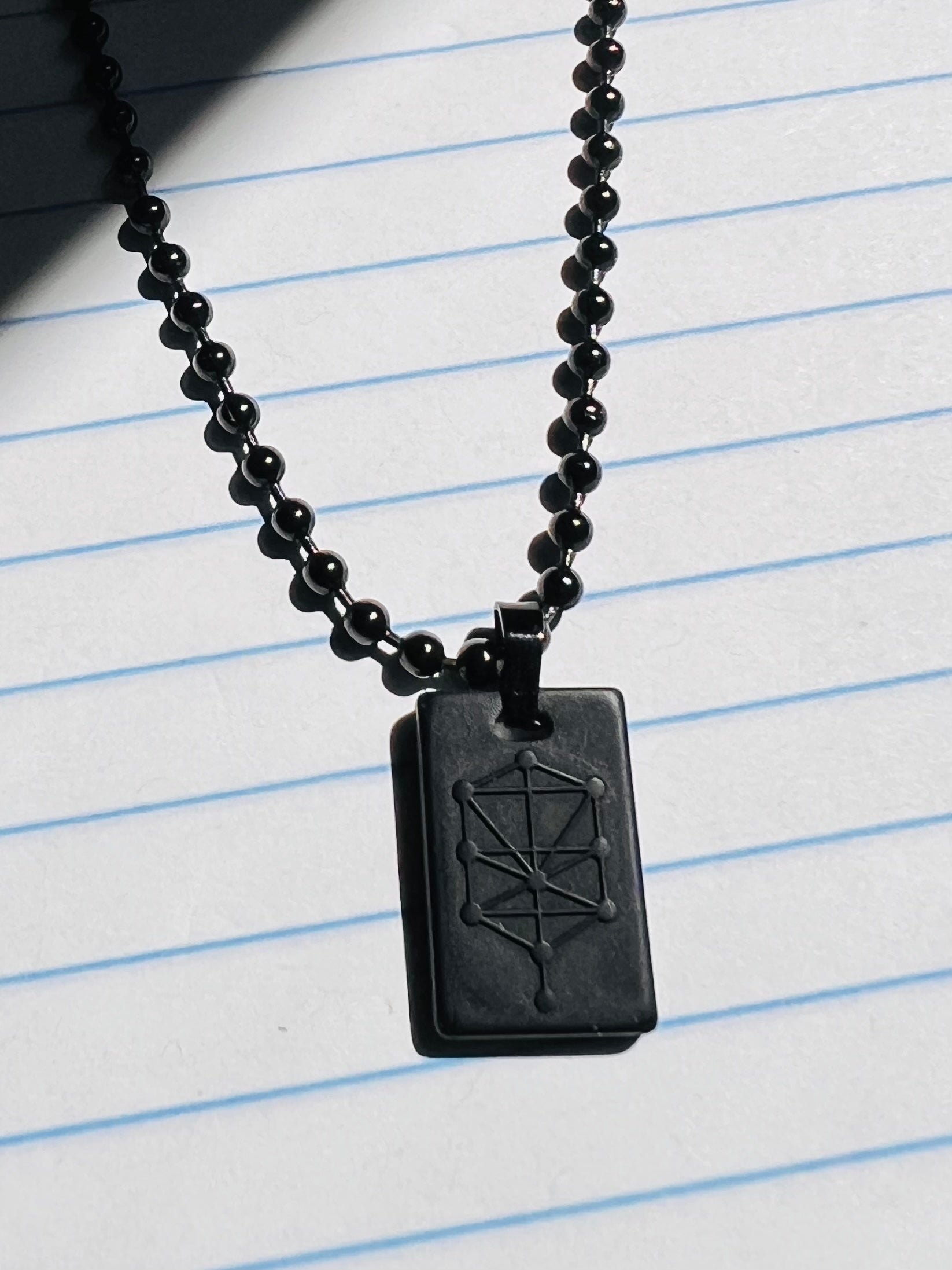 Inscribed onto one side of the locket, this symbol depicts the 10 dimensions of energy that create our Universe, with each Sefira (or 'dot') representing another level and aspect of spiritual consciousness.